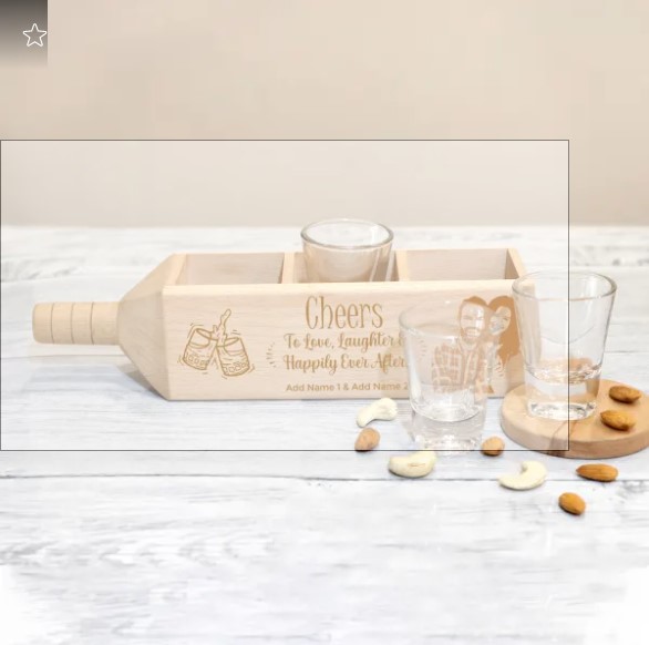 Raise your glass and toast to a beautiful, loving bond that you hold so dearly in your heart. Make your partner smile ear to ear with this adorable yet quirky set of three shot glasses. They come with a uniquely designed Bottle Shaped Wooden Holder, you can engrave couple's images and names on it.
